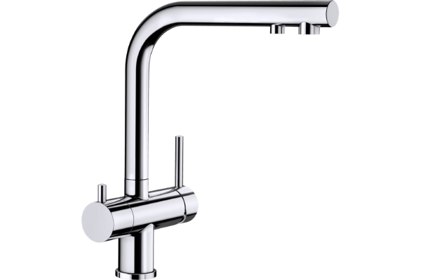 Käytännöllinen 3-in-1-keittiöhana, josta saat kylmän, lämpimän ja suodatetun veden. Hanassa on erilliset vesikanavat, joten suodatettu vesi ei sekoitu vesijohtoveden kanssa. Suodatetulle vedelle on oma käyttövipu vasemmalla puolella. Korkea juoksuputki ja täysi kääntyvyys takaavat erinomaisen käyttömukavuuden.