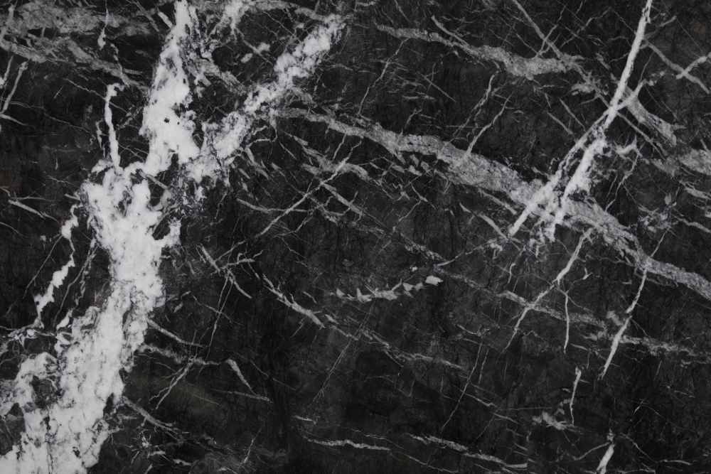 Grigio Carnico on harmaa (melkein musta) italialainen marmori, jossa on ominaista virtaava kuvio.