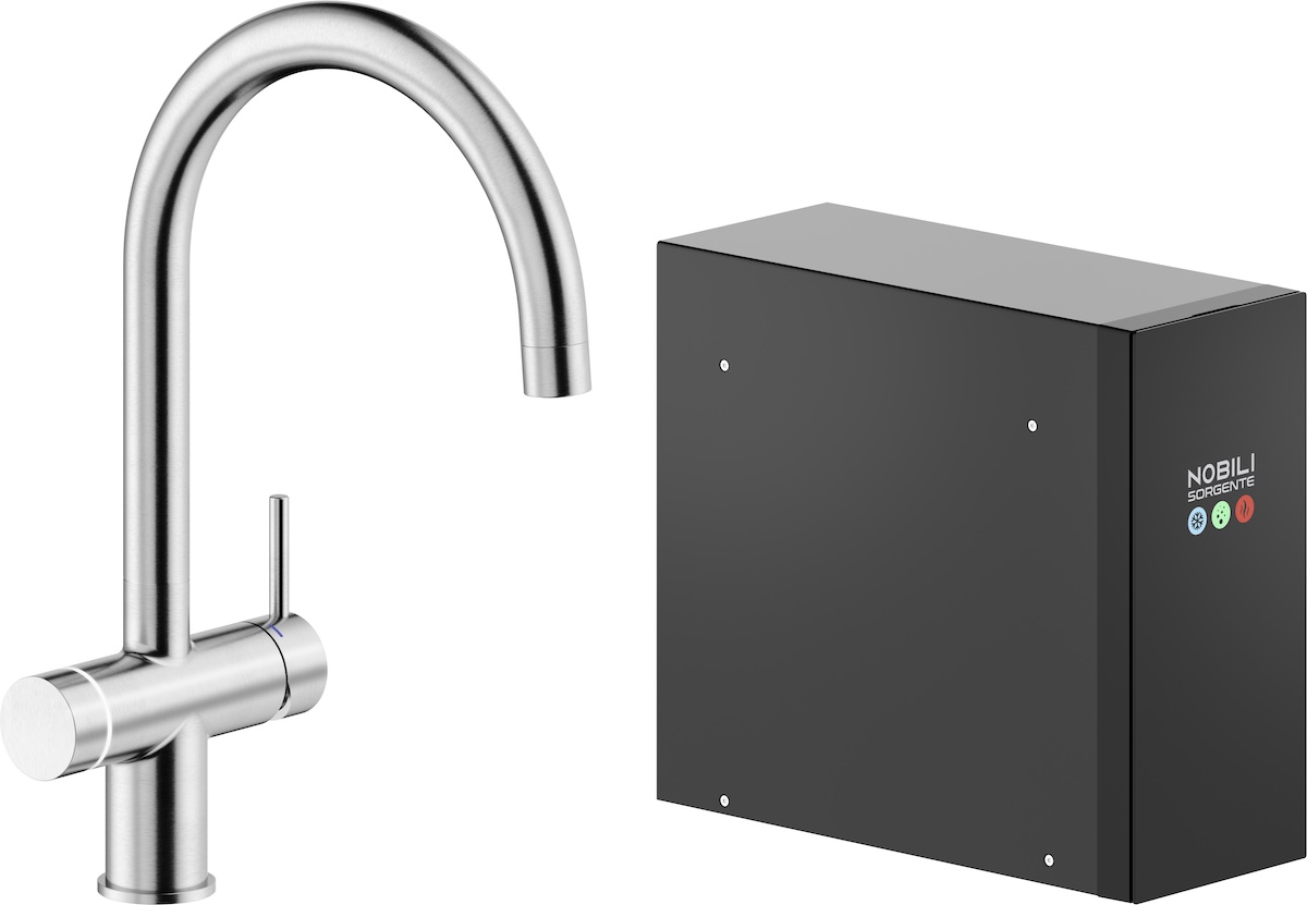 Monitoiminen Nobili ALL IN 1 keittiöhana yhdistää tavallisen hanan, suodatusjärjestelmän, jäähdytyksen, hiilihappotuksen ja pikakuumaveden järjestelmän. Tämä älykäs ratkaisu mahdollistaa tavallisen hanaveden, suodatetun veden, kylmän hiilihapollisen veden tai 99 °C kuumaveden saamisen saman hanan kautta. Hanan tyylikäs muotoilu ja useat viimeistelyvaihtoehdot sopivat täydellisesti moderniin keittiöön säästäen arvokasta työtason tilaa. Energiatehokas ratkaisu korvaa vedenkeittimen ja pulloveden tarpeen.